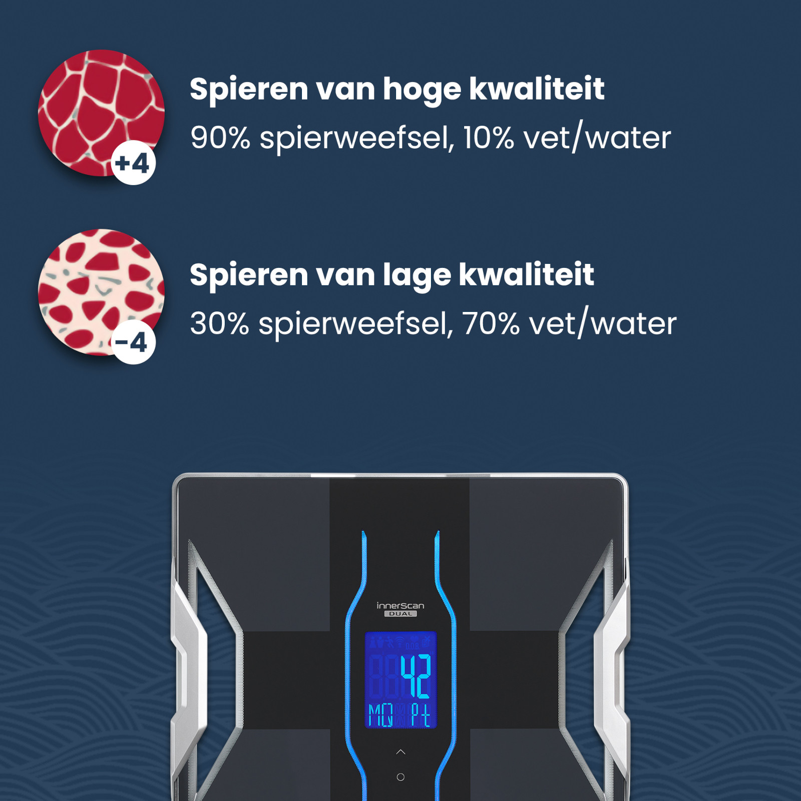 Weegschaal met veel verschillende lichaamsanalysewaarden: